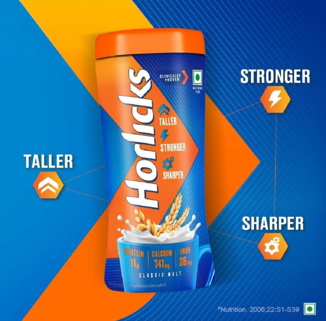 “Horlicks is India’s #1 Nutrition Drink that helps kids be Taller, Stronger, Sharper. It contains 27 vital nutrients like Folic Acid, Vitamin D, Protein, Calcium, and iren that help in mental development and physical strength. It also has Zinc and Vitamin E that build immunity. with stronger bones, increased muscle mass, and improved concentration. Horlicks is clinically proven to make kids Taller, Stronger, Sharper. Calcium, Phosphorus, Magnesium & Vitamin D supporting height gain Taller * Protein & Potassium supporting healthy bones and muscles – Stronger * Vitamin B9, B12, Iron, ledine & Zinc supporting attention & concentration Sharper * Vitamin A, E, C, Copper & Selenium to support immunity.”